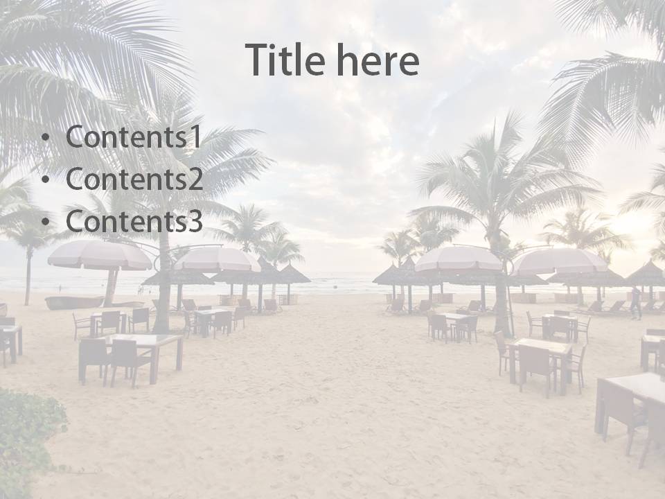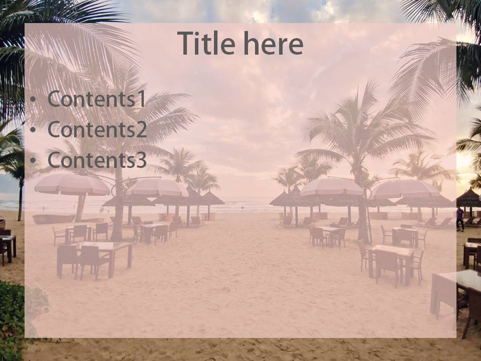 이 배경은 특히 차분하면서도 따뜻한 분위기를 연출하는 데 아주 좋습니다. 석양이 수평선 너머로 내려가고 있는 장면은 누구에게나 편안함을 주고, 발표를 듣는 이들에게도 부드러운 인상으ㄹ 남길 수 있죠. 야자수가 그려진 이 해변 배경은 여유로운 분위기를 만들어 주고, 테이블이 있는 장면은 사람들에게 휴양지에서 쉬고 있는 듯한 편안함을 떠올리게 합니다.